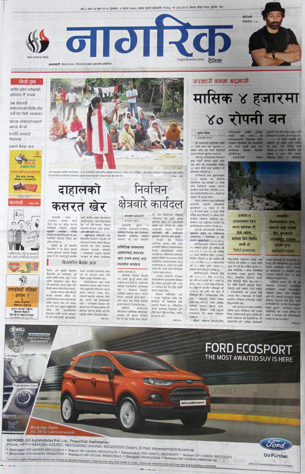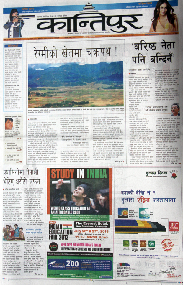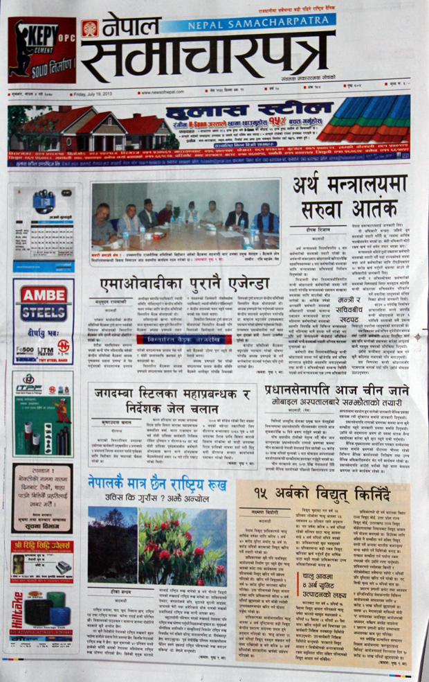 कान्तिपुर दैनिकले रेग्मीको खेतमा चक्रपथ बनाउने योजनासहितको बजेट विनियोजन गरेको खबरलाई मुख्य बनाएको छ भने एमाओवादीमा पदीय जिम्मेवारीको विवाद फेरि बढेको नागरिक दैनिकले मुख्य खबर छापेको छ ।
