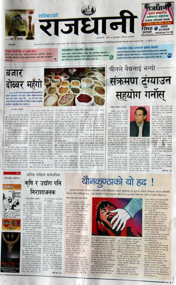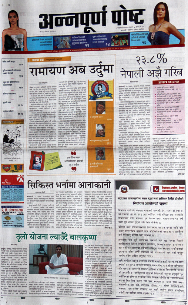 रामायण अब उर्दुमा पनि प्रकाशित हुने खबर अन्नपूर्ण पोष्टले मुख्य खबर बनाएको छ भने बजार भाउ दोब्बर बढेको राजधानी दैनिकमा खबर छ ।