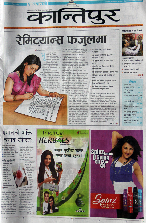 कान्तिपुर दैनिकले रेमिट्यान्स फजुलमा खर्च भएको खबरलाई मुख्य बनाएको छ भने नागरिक दैनिकले रेडकर्नर नोटिसनै अबैध भएको खबरलाई मुख्य बनाएको छ ।